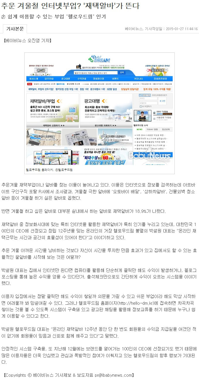 2015³â 1¿ù 27ÀÏ Çï·Î¿ìµå¸² ÀçÅþ˹٠"º£À̺ñ´º½º" ±â»ç µî·Ï!